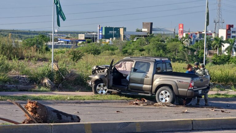 De acuerdo con los reportes policiales, el vehículo siniestrado es una camioneta Toyota Tacoma, modelo reciente de cuatro puertas, en color gris oscuro o dorado. La unidad quedó con la parte frontal totalmente destruida tras colisionar con el tronco de una palmera ubicada en el camellón central de la vialidad.