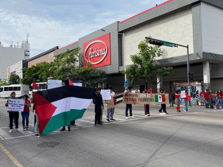 Bacasegua Cota señaló que otro de los propósitos de la manifestación pacífica, en la que también participaron algunos ciudadanos, fue concientizar a la sociedad sobre la situación humanitaria que enfrenta Palestina.