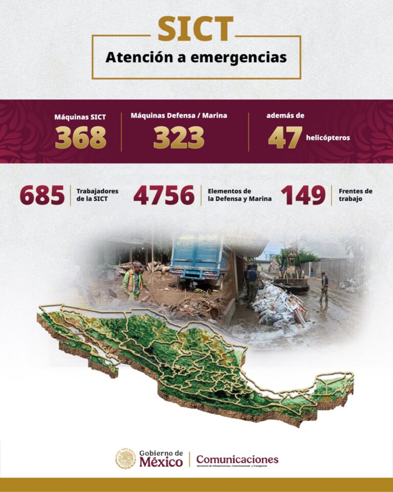 El secretario de Infraestructura, Comunicaciones y Transportes(SICT), Jesús Esteva, informó durante la conferencia mañanera del pueblo este viernes 17 de octubre que si bien hay un progreso, todavía 160 comunidades se encuentran sin acceso.