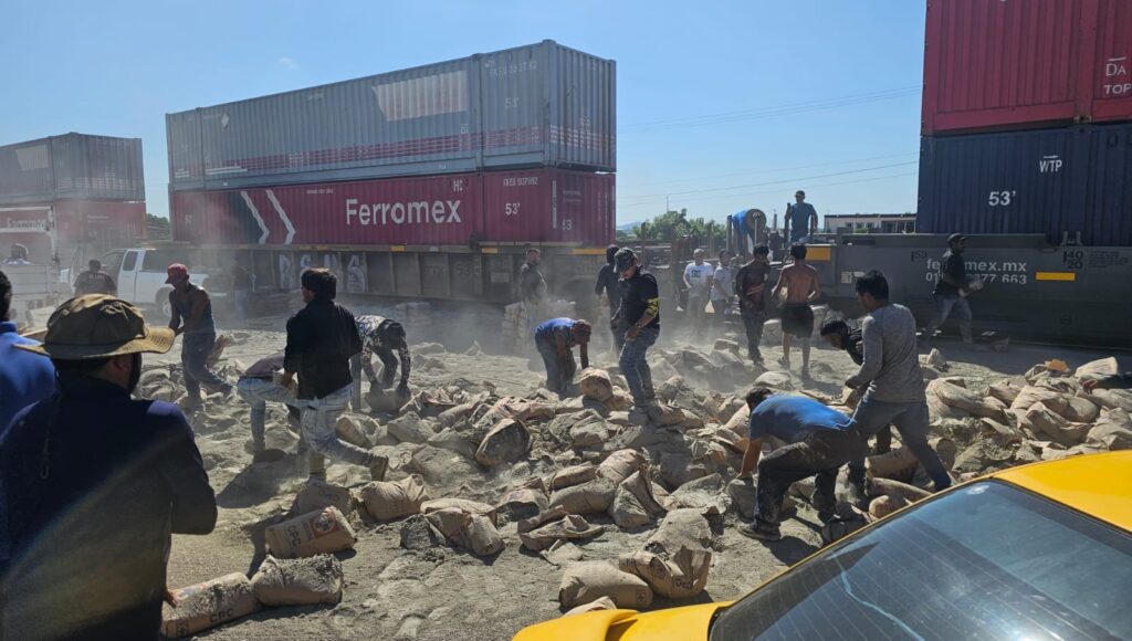 Un aparatoso accidente se registró la mañana de estemiércoles 29 de octubre, luego de que el tren de carga arrollara a un camión doble remolque que transportaba costales de cemento.