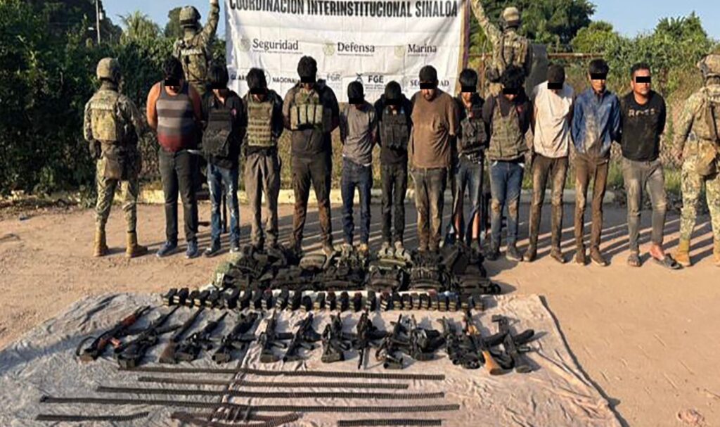Agresión a la Marina en Navolato deja a 13 hombres detenidos; les aseguraron 14 armas de fuego, vehículos y ocho motocicletas