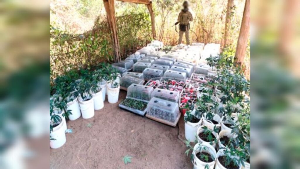 Durante las acciones, personal militar encontró cuatro armas largas, 57 cargadores, 2 mil 944 cartuchos y cuatro chalecos tácticos, además de 3 mil 196 plantas de mariguana, las cuales fueron incineradas en el lugar bajo estrictas medidas de seguridad.