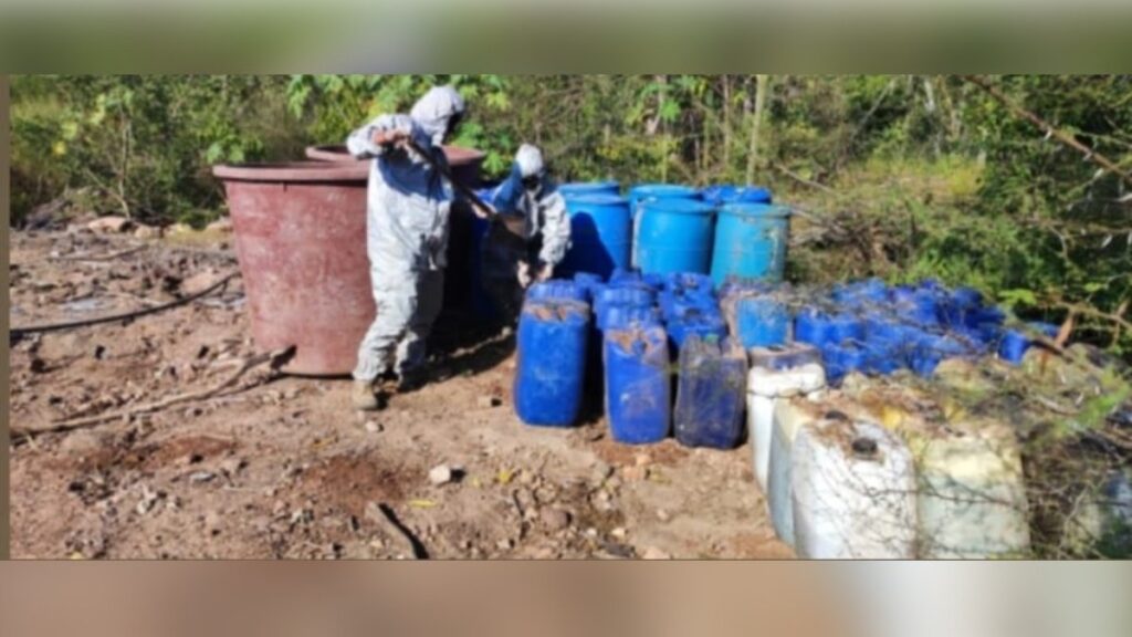 Elementos del Ejército Mexicano localizaron y aseguraron dos áreas de almacenamiento de precursores químicos en la zona rural del municipio d Culiacán, sinaloa.