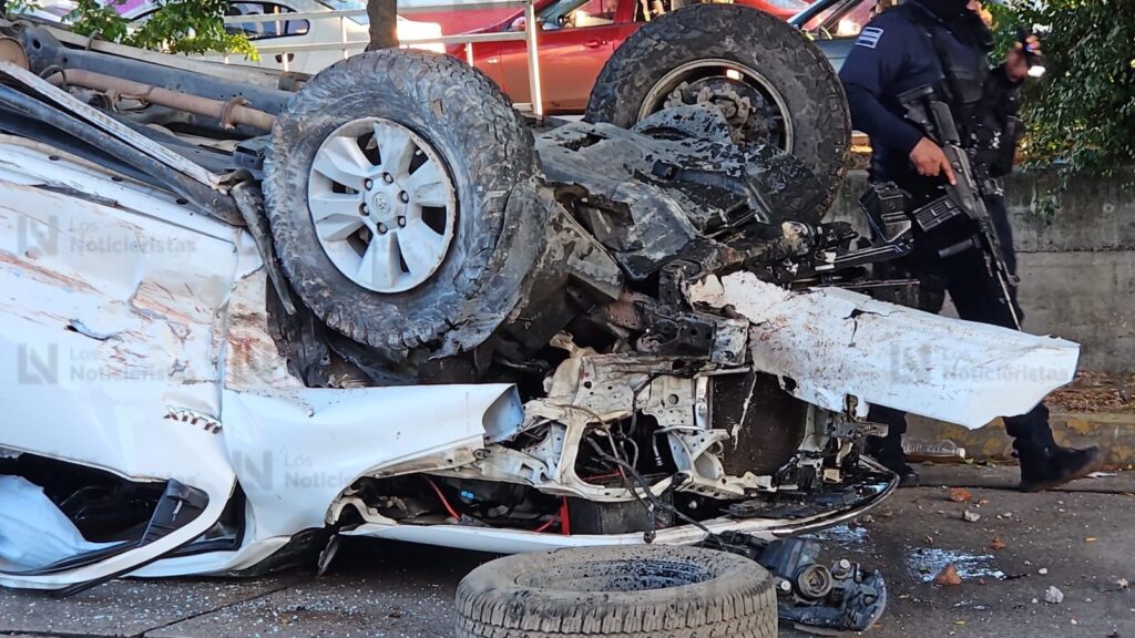 El elementos viajaba en una camioneta Hilux doble cabina color blanca, quien viajaba a la altura del Zoológico de Culiacán, donde se volcó al chocar con unas maceteras del lugar quedando con las llantas hacia arriba.