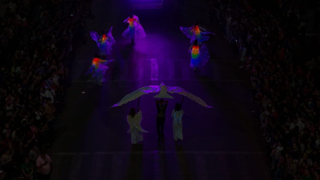 Durante la ceremonia de arranque de este Desfile Navideño, frente a la Catedral Basílica de Nuestra Señora del Rosario, se llevó a cabo un performance en el que el Arcángel Gabriel bajó para anunciarles a la Virgen de Guadalupe el nacimiento de Jesús.