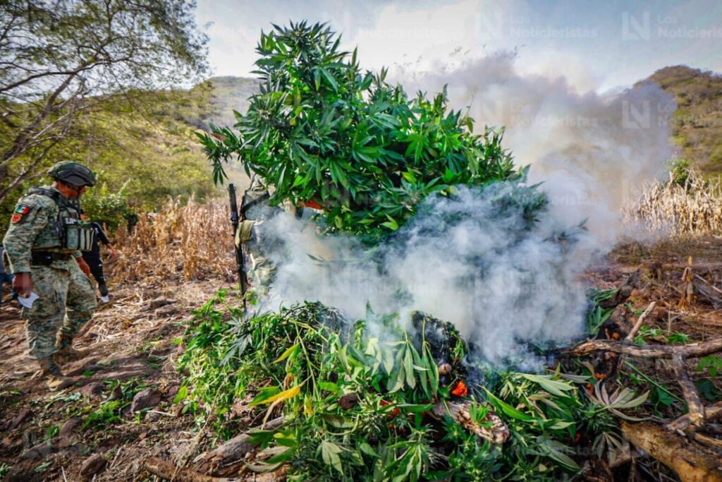El general explicó que solamente en este aseguramiento y destrucción de más de 2 mil metros cuadrados distribuidos en los 7 plantíos de siembra de mariguana localizados, se habrían de incinerar más de 500 kilos de “cola de borrego”, que es como se le conoce a la planta luego del proceso de secado, y que en este punto está lista para su venta en el mercado ilegal.
