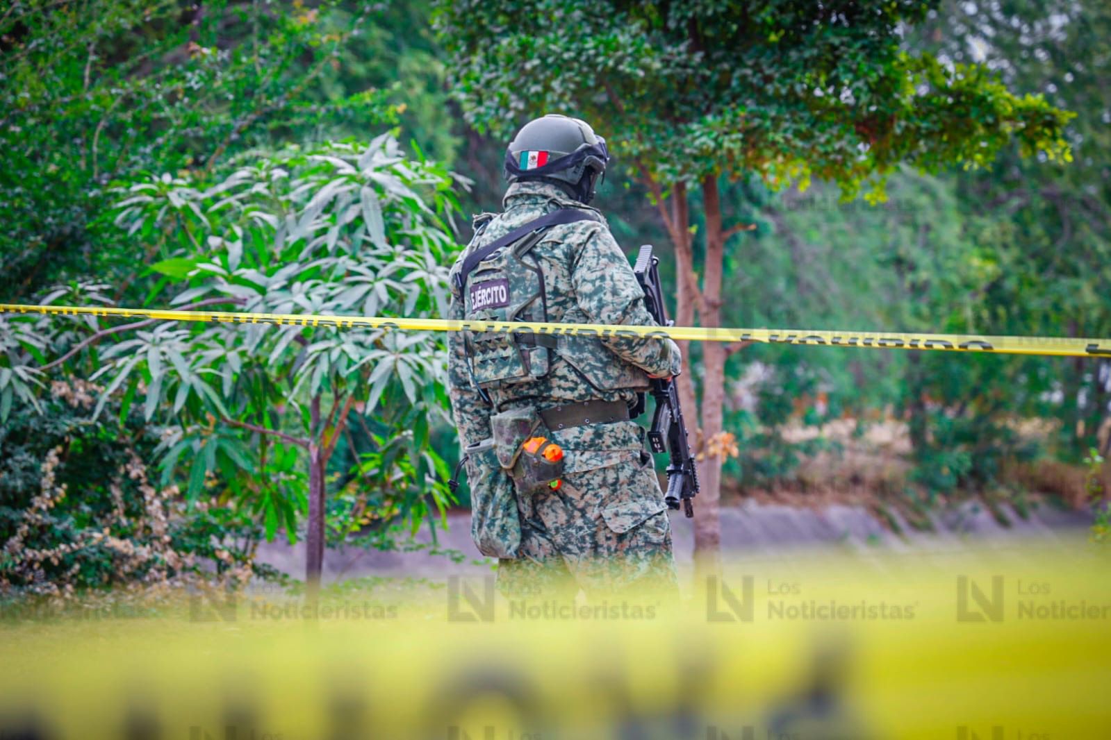 Elementos del Ejército Mexicano acudieron al sitio de la denuncia y confirmaron que había una mujer sin vida aparentemente a causa de múltiples golpes en diferentes partes del cuerpo, por lo que acordonaron la escena del crimen con cinta de precaución amarilla.