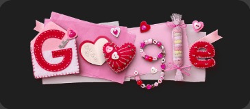 En esta ocasión, la compañía reemplazó su tradicional logotipo por un doodle animado especialmente diseñado para conmemorar el Día de los Enamorados. Las letras aparecen en tonos rosa y rojo y están construidas a partir de pulseras de la amistad, dulces, cartas de amor y otros elementos característicos de la celebración.